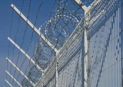 - الأسلاك الشائكة: إضافة أسلاك شائكة حلزونية أو خطية في الأعلى لزيادة مستوى الأمان.