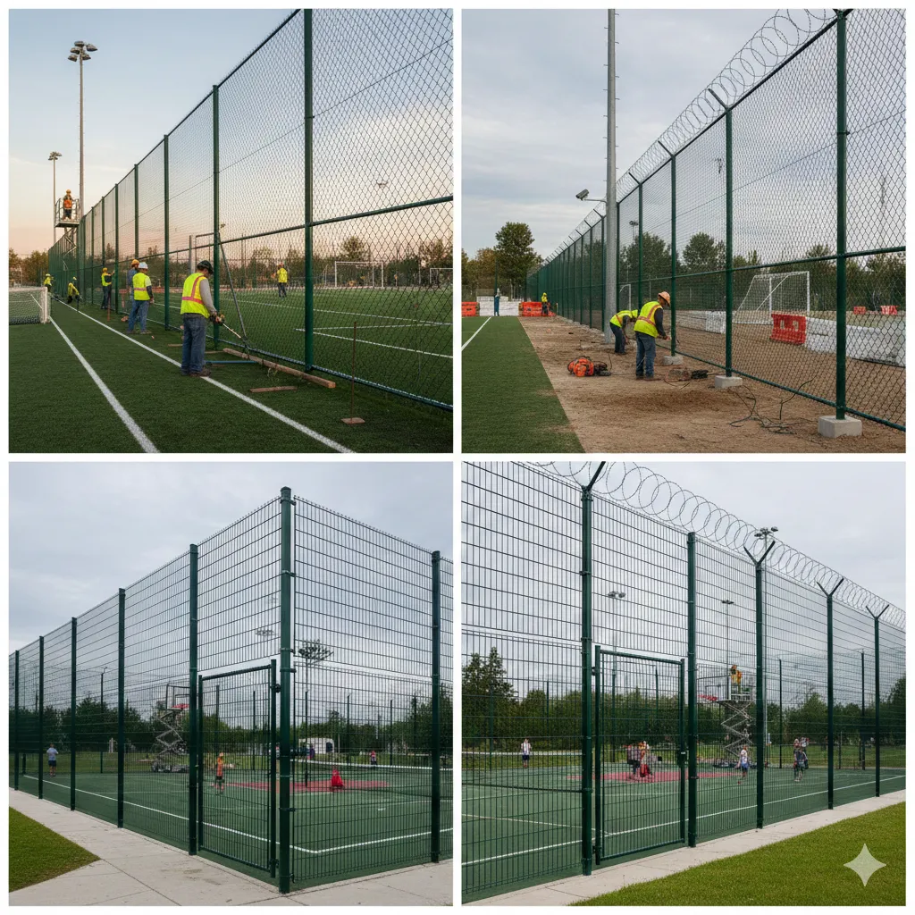 👉التي تتبعها المؤسسات المتخصصة في الرياض:- القواعد الخرسانية: يتم صب قواعد صلبة للأعمدة لضمان ثبات السياج ضد الرياح القوية.