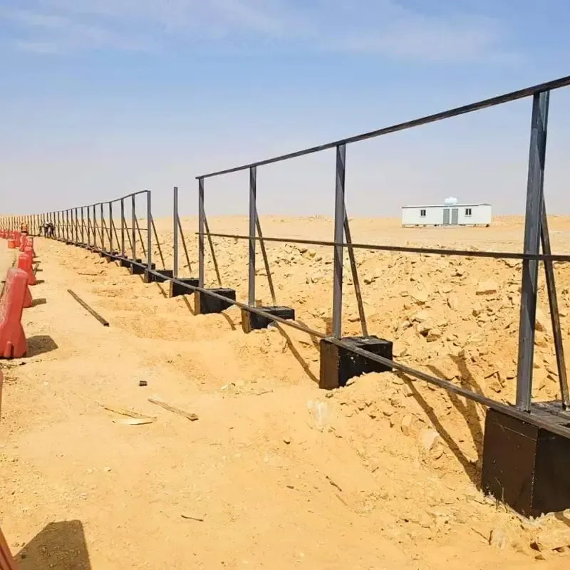 - القواعد الخرسانية: صب قواعد أسمنتية للأعمدة لضمان الثبات أمام الرياح القوية.