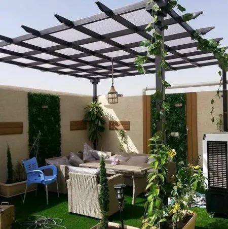 - الميزة الأقوى لـ 2026: هي البرجولات المصنوعة من الألومنيوم المؤكسد (مقاوم للصدأ 100%). يتميز هذا النوع بـ شرائح قابلة للتحريك يمكن التحكم بها عن بُعد (ريموت كنترول) لتعديل درجة الإضاءة والتهوية، وحتى الغلق الكامل للحماية من المطر. لماذا هي الأفضل؟ تجمع بين صلابة المعدن ومقاومته للطقس القاسي، ومرونة التظليل.