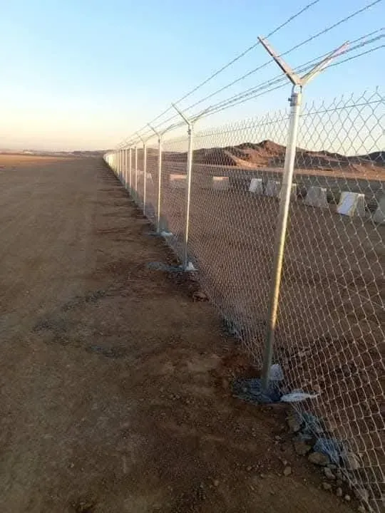 - شدّ الشبك وتثبيت الأسلاك الشائكة: يتم شد شبك الحماية بإحكام فائق وتثبيته على الأعمدة باستخدام أسلاك ربط قوية، ومن ثم تركيب الأسلاك الشائكة في الجزء العلوي لتعزيز الحماية.