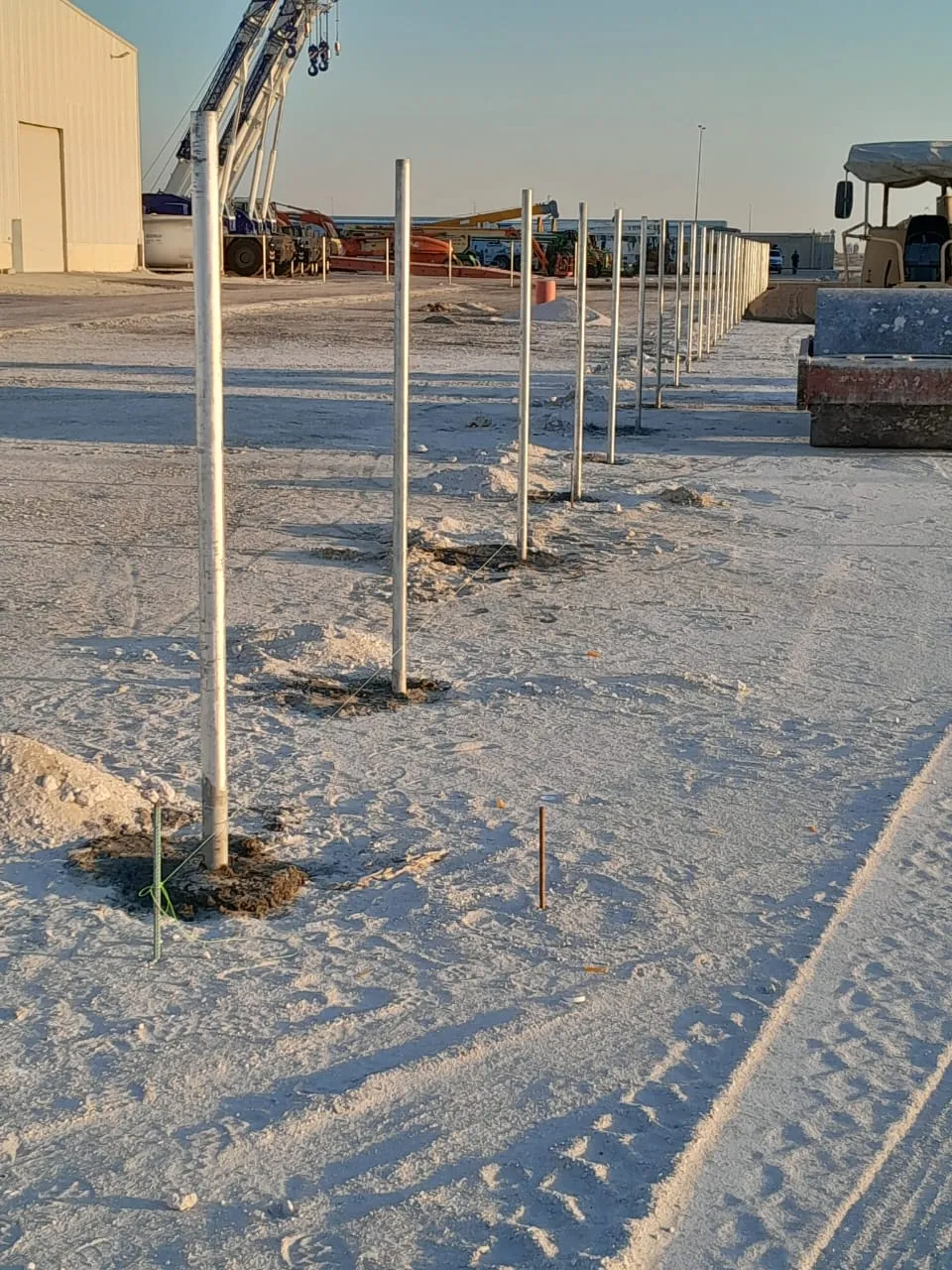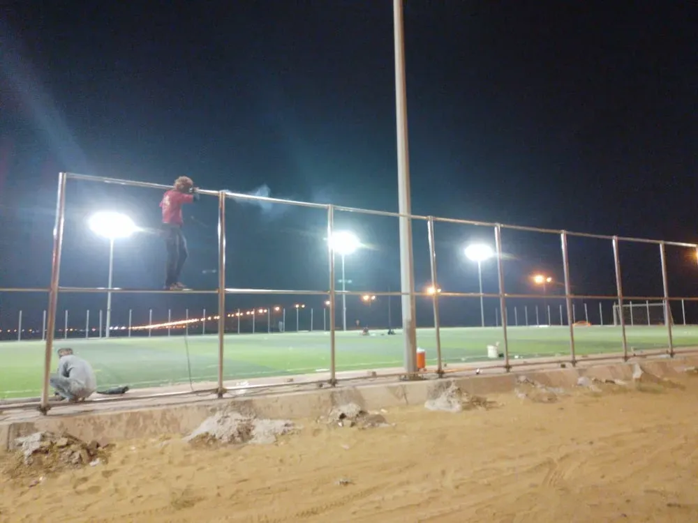 الأعمدة الخرسانية أو الحديدية الثابتة: لضمان عدم اهتزاز أو سقوط الشبك مع الرياح أو التمدد.