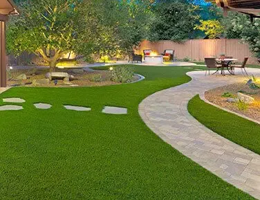 العشب الصناعي: هو الخيار الأكثر شيوعًا في الرياض لسهولة صيانته وتوفيره لمظهر أخضر دائم دون الحاجة لكميات كبيرة من الماء.